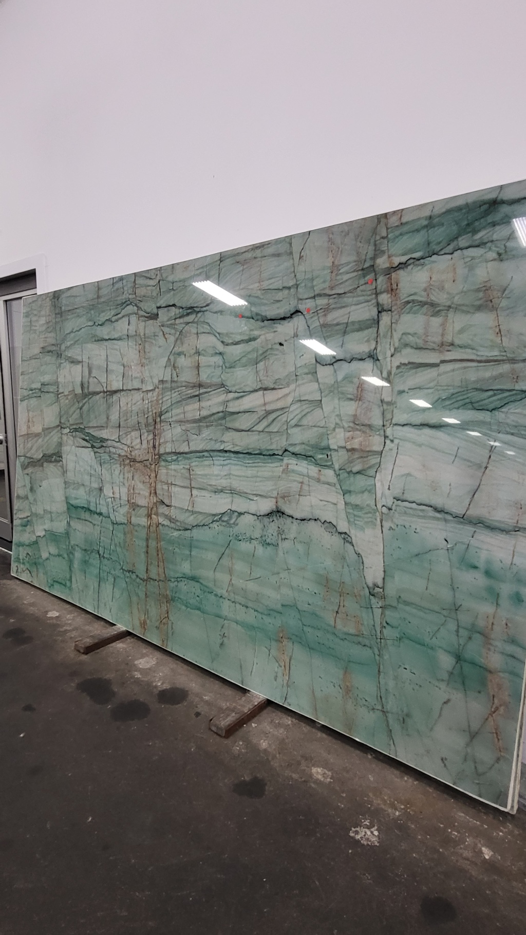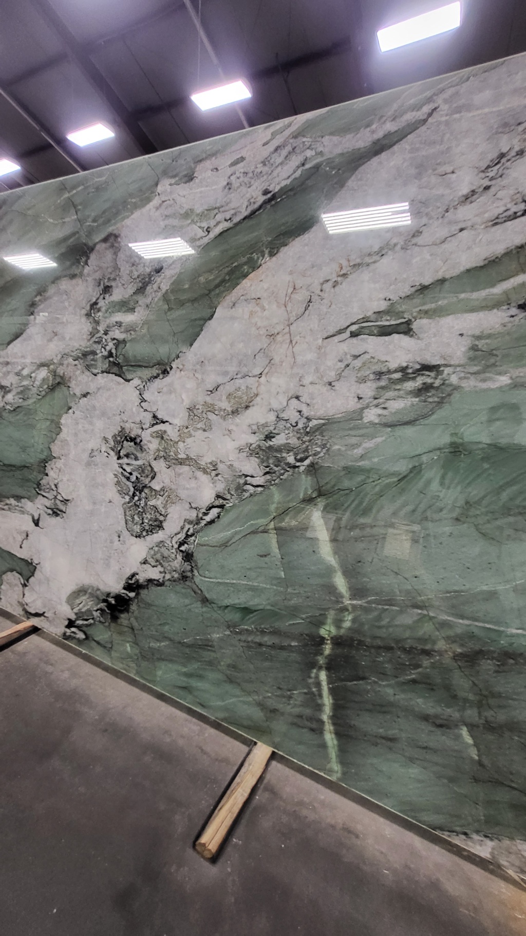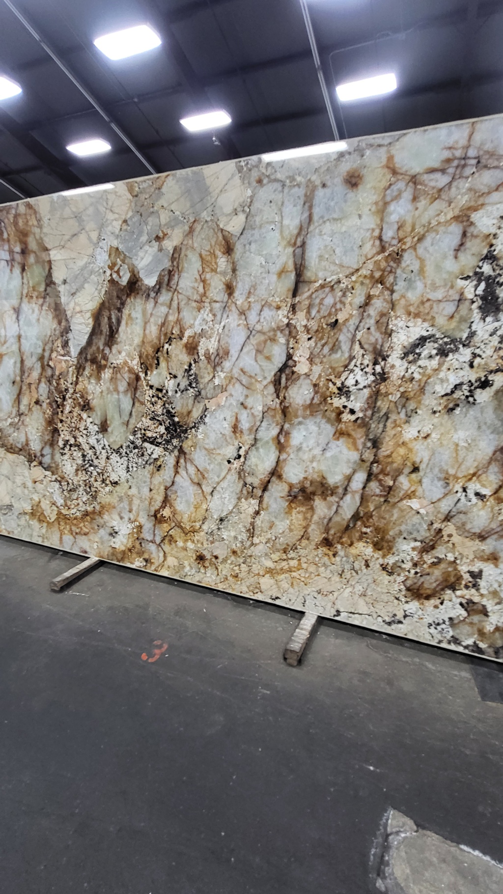 If Granite is Art, Quartzites are the Picaso’s of ART! Probably some of the most Striking… Exotic Colors and Patterns used for Countertops. They also are amongst the most expensive. Quartzites are Natural Stones formed under high heat and pressure. They are comprised of mainly natural Quartz particles and is known for its vivid colors, hardness and durability. They also need to be sealed. Quartzites can be Bold, Wild in color, and awesome patterns. They can have a similar veined like appearance to Marble but with a much higher resistance to staining, scratching and etching.